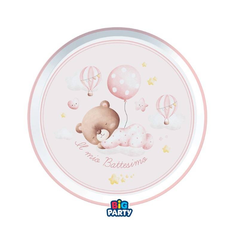 PIATTI ø18cm BATTESIMO BABY BEAR ROSA 6pz