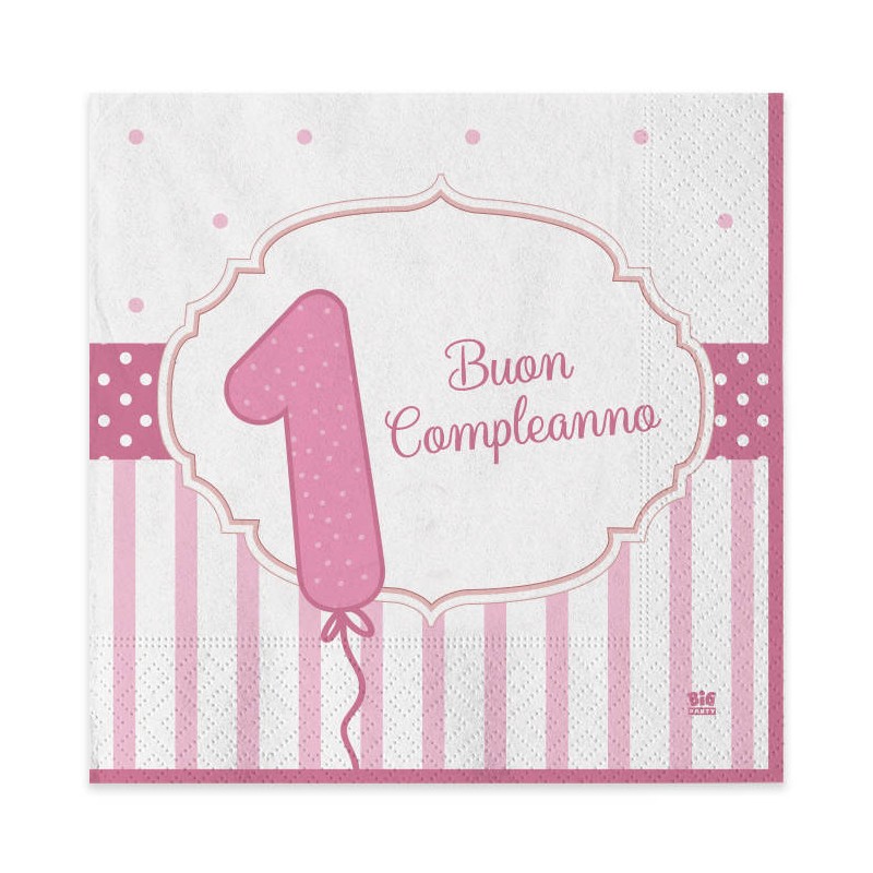 TOVAGLIOLI 33x33 BUON PRIMO COMPLEANNO ROSA 20pz