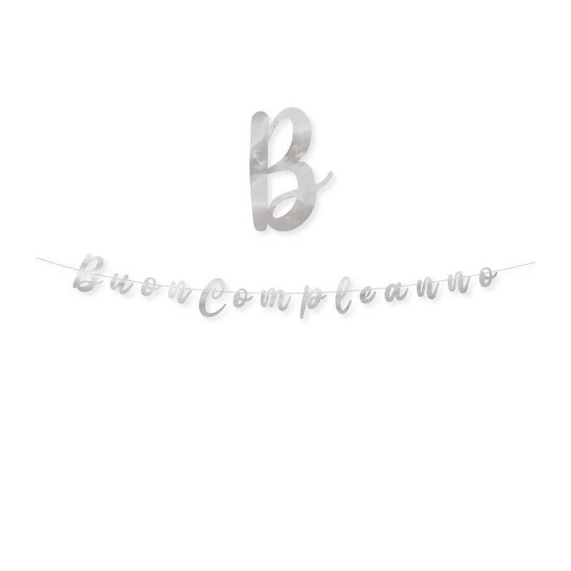 FESTONE ITALIC BUON COMPLEANNO ARGENTO METAL cm15x3mt