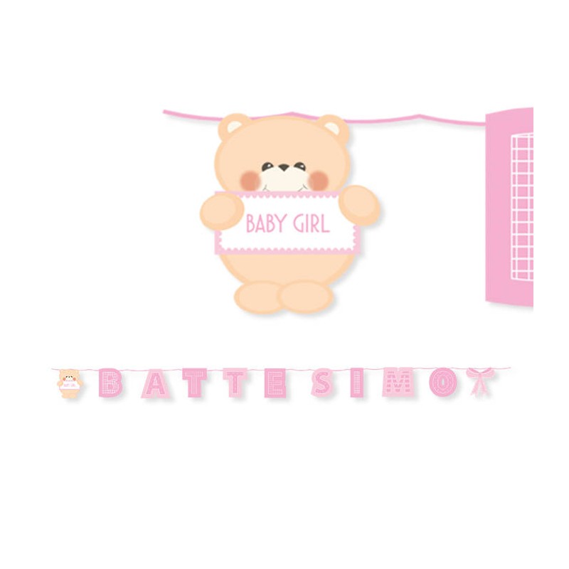 FESTONE MAXI BATTESIMO TEDDY ROSA 6MT