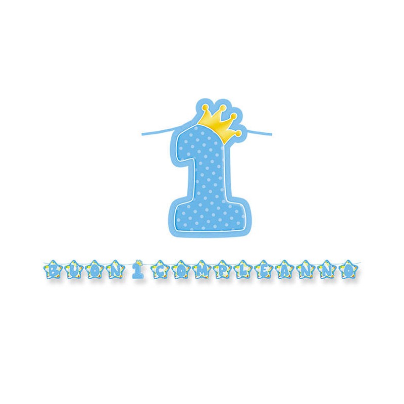 FESTONE MAXI BUON 1° COMPLEANNO CELESTE 6mt