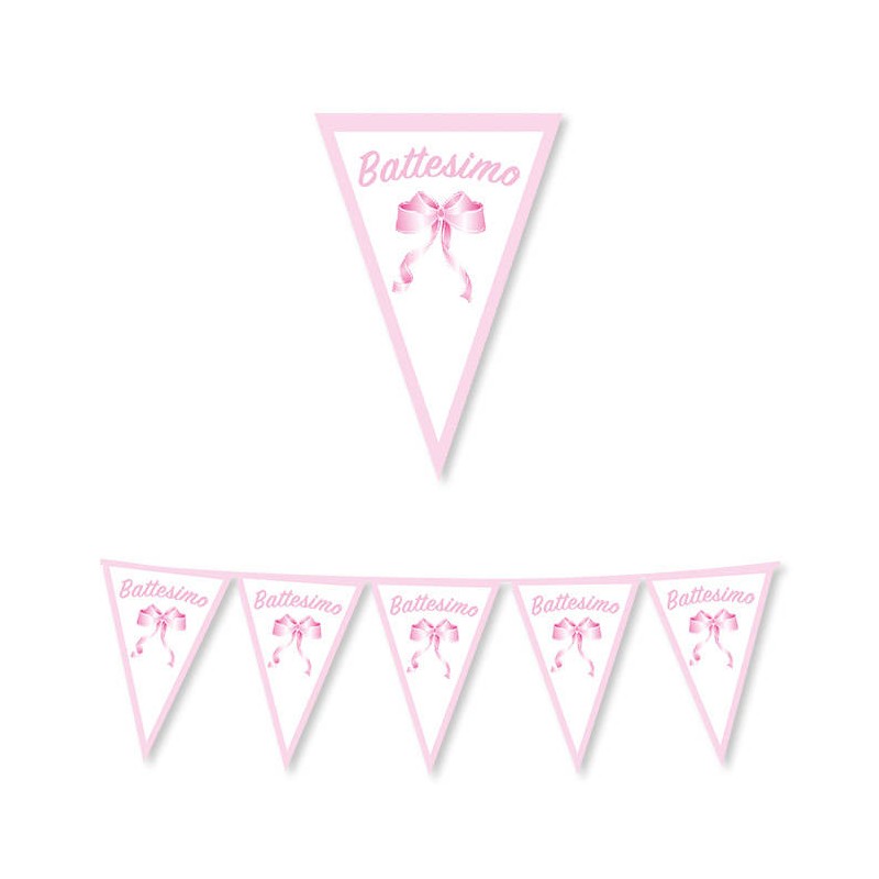 FESTONE BANDIERINE CARTA BATTESIMO ROSA 30x300cm