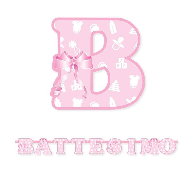 FESTONE SCRITTA BATTESIMO ROSA cm15x1,40mt