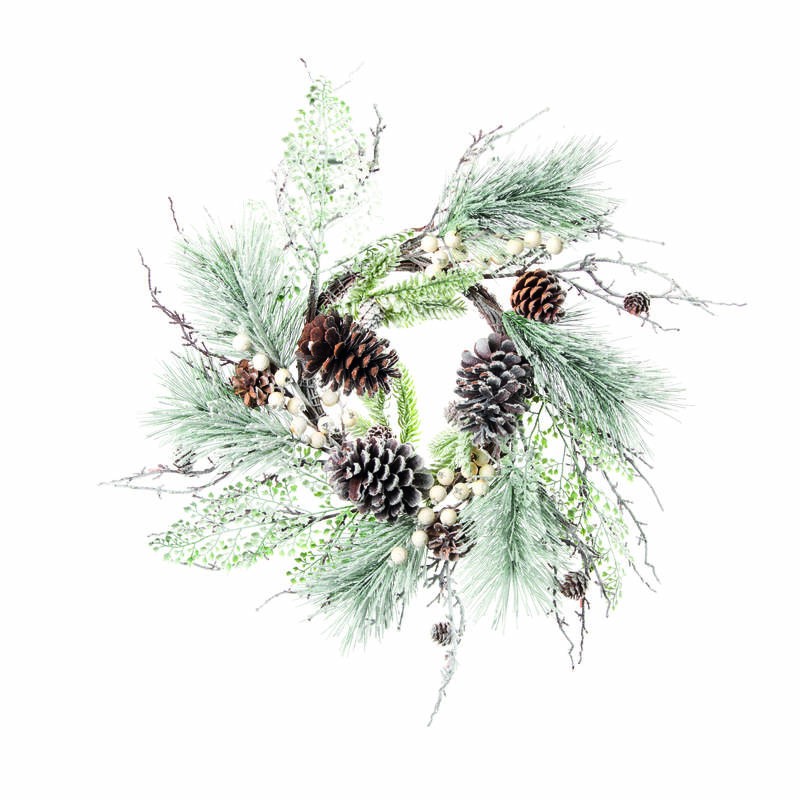 GHIRLANDA PIGNE CON BACCHE BIANCHE ø60cm