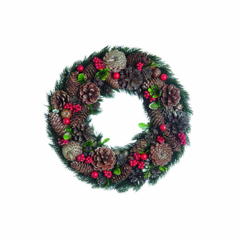 GHIRLANDA CORONA PIGNE E BACCHE ROSSE LUX Ø33