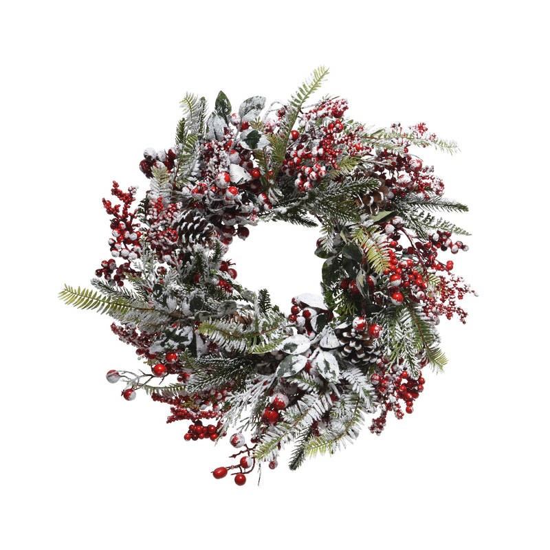 GHIRLANDA C/BACCHE ROSSE E PIGNE ø40cm INNEVATA
