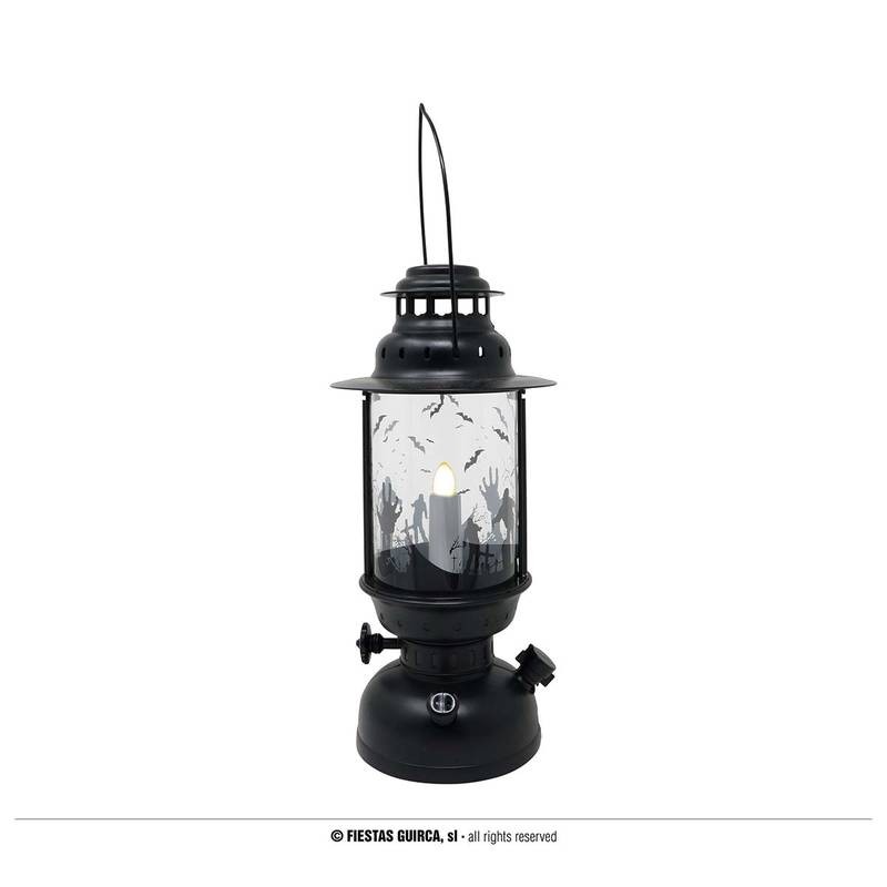 LANTERNA NERA CON CANDELA E LUCE 30cm