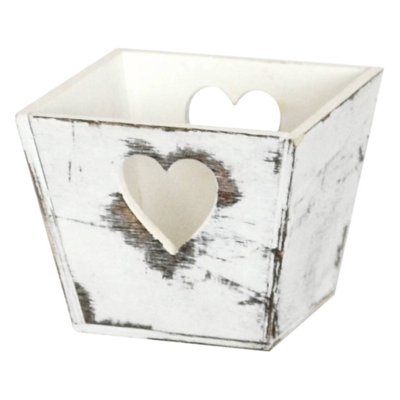 VASCHETTA LEGNO BIANCO ANTICATO C/CUORE 10x10x8cm CASL2494