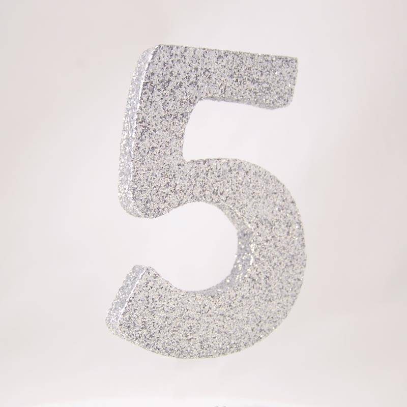 NUMERO POLISTIROLO GLITTER mm120x90 5 ARGENTO