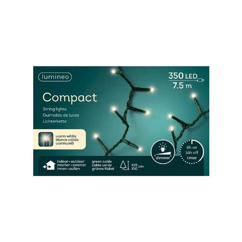 LED COMPACT 350 LUCI BIANCO CALDO 7,5mt FISSE FILO VERDE DA ESTERNO