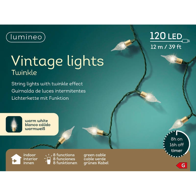 LED VINTAGE 8 FUNZIONI TWINKLE 12mt - LUCE CALDA INTERNO