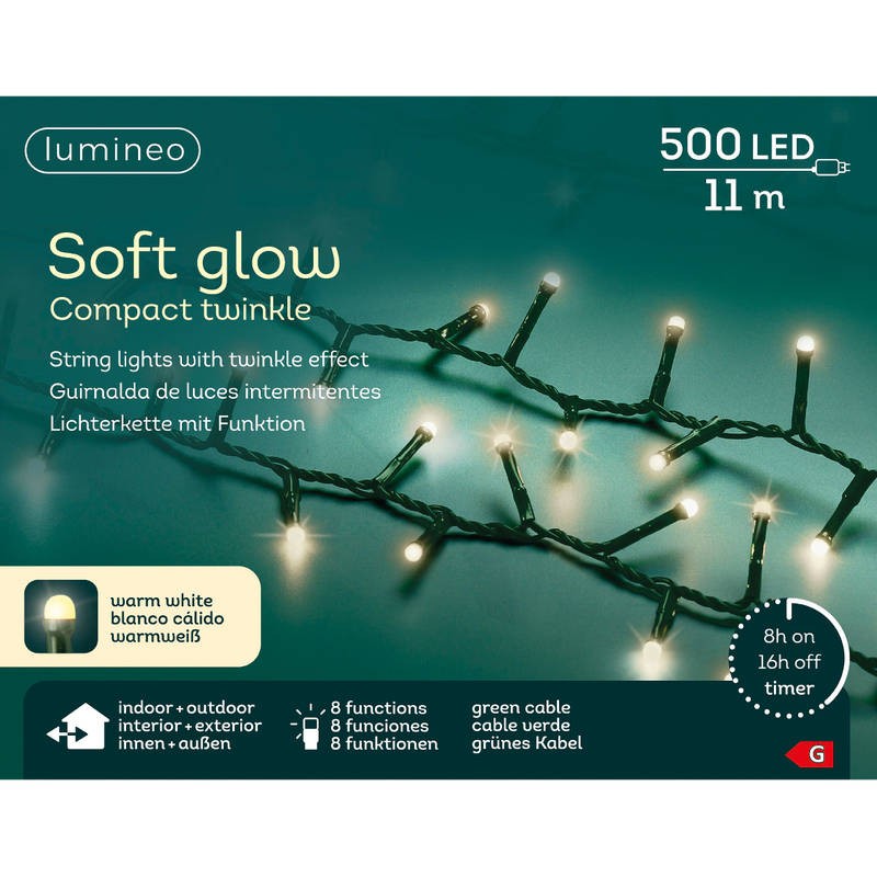 COMPACT SOFT GLOW 500 LUCI 11mt 8 FUNZIONI FILO VERDE INTERNO/ESTERNO BIANCO CALDO