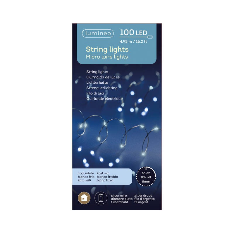 MICRO LED 100 LUCI 4,95mt FILO ARGENTO - LUCE FREDDA INTERNO