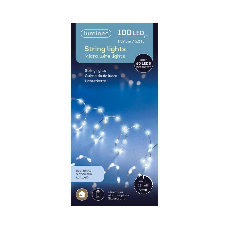 MICRO LED 100 LUCI 1,59mt FILO ARGENTO - LUCE FREDDA INTERNO