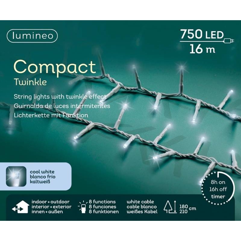 LED COMPACT 750 LUCI BIANCO FREDDO 16mt INTERMITTENTI FILO BIANCO INT/EST
