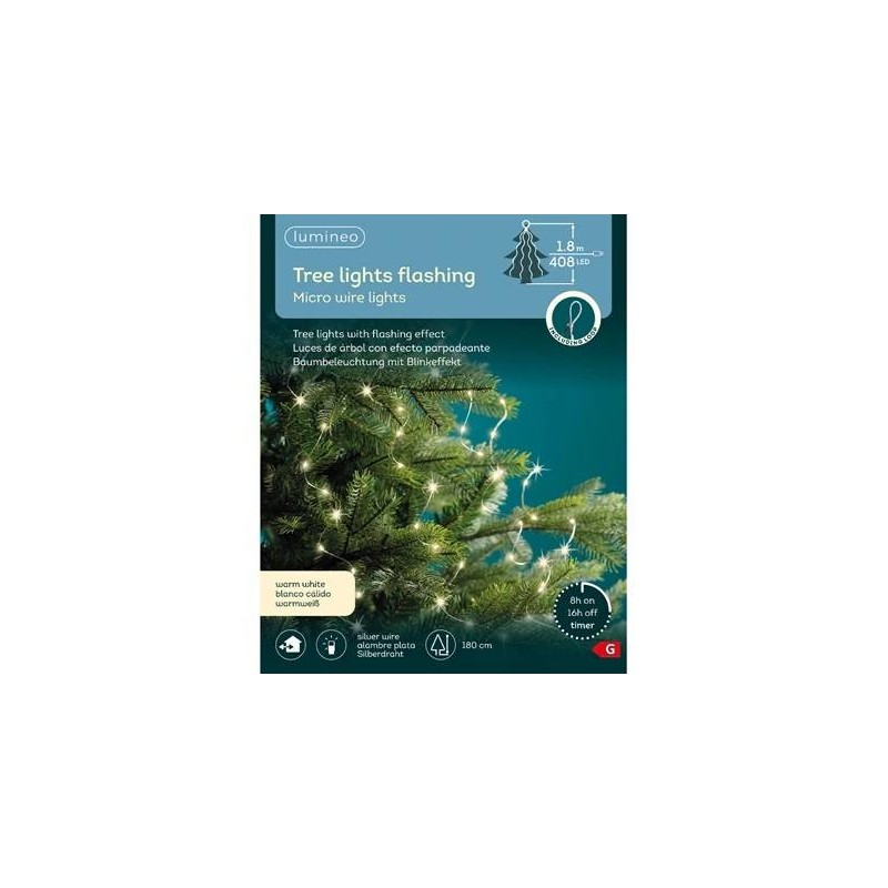 MICRO LED PER ALBERO 408 LUCI 180cm BIANCO CALDO EFFETTO LAMPEGGIANTE INT/EST