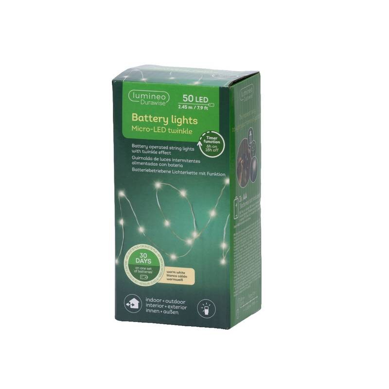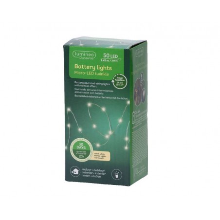 MICRO LED STRINGLIGHT 8 FUNZIONI TWINKLE 2,45mt - FILO ARGENTO LUCE CALDA ESTERNO
