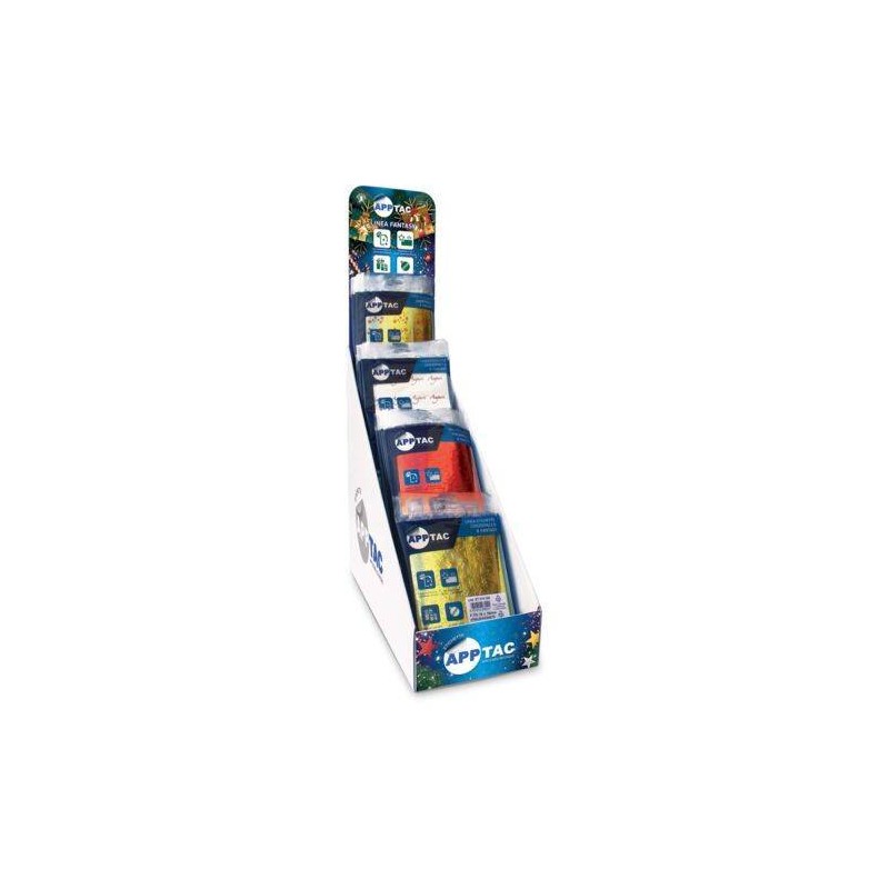 AppTac Fantasy propone tanti formati e tante stelline adesive per decorare feste e ricorrenze. Proposte in pratiche eleganti bustine che permettono un uso semplice e veloce per confezionare e decorare sia in negozio che a casa con una grafica fresca e comunicativa e il luccichio dell’oro e dell’argento.