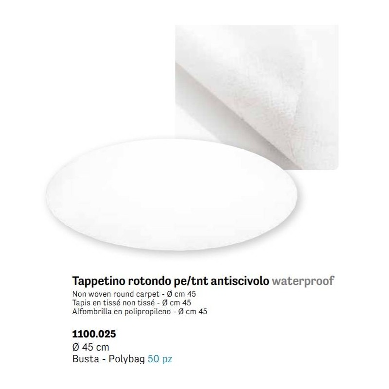 TAPPETINO ROTONDO PE/TNT ANTISCIVOLO WATERPROOF ø45 50pz