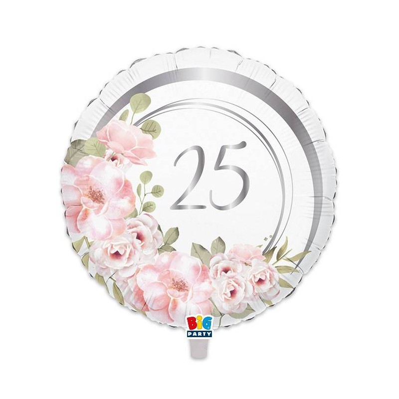 PALLONE MYLAR TONDO 45cm 25° ANNIVERSARIO FLORAL