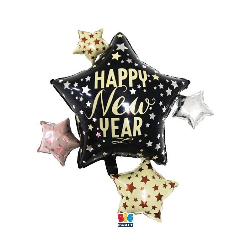 PALLONE MYLAR S/SHAPE HAPPY NEW YEAR STARS 90x83cm