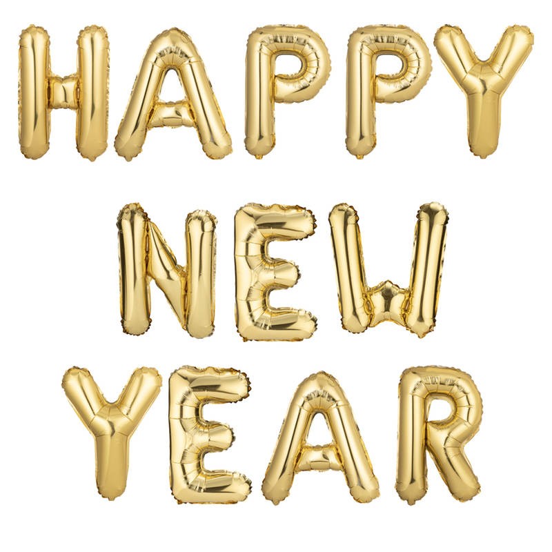 PALLONI MYLAR LETTERE HAPPY NEW YEAR ORO H.40cm
