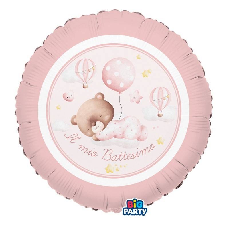 PALLONE MYLAR TONDO 45cm BATTESIMO BABY BEAR ROSA