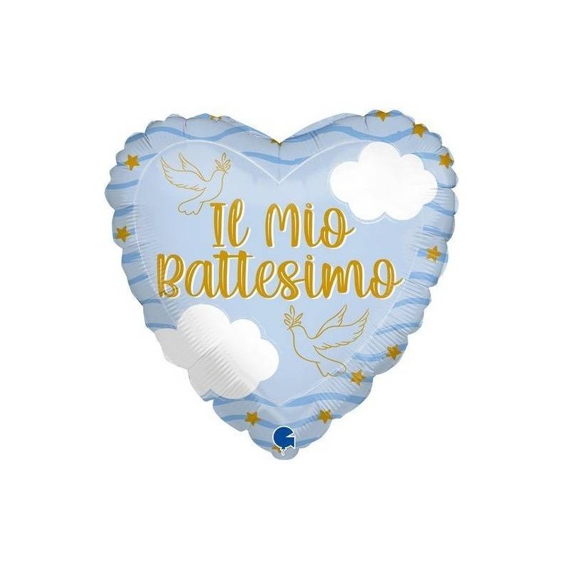 PALLONE MYLAR CUORE 18" 45cm IL MIO BATTESIMO BIMBO