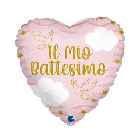 PALLONE MYLAR CUORE 18" 45cm IL MIO BATTESIMO BIMBA