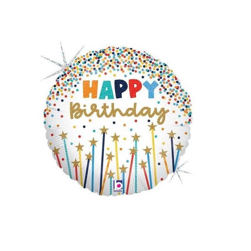 PALLONE MYLAR 18" 45cm HAPPY BIRTHDAY STAR CANDLES