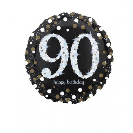 PALLONE MYLAR TONDO 17" 42cm SPARKLING BIRTHDAY 90 ANNI