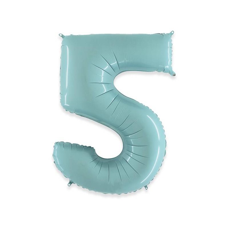 PALLONE NUMERO 5 MYLAR 102cm 40" CELESTE