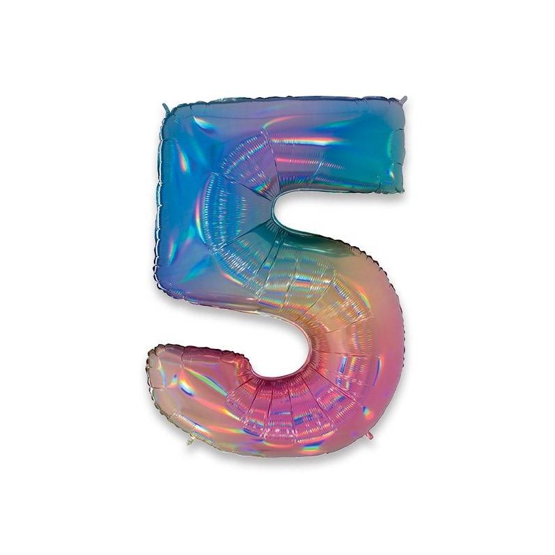 PALLONE NUMERO 5 MYLAR 102cm 40" RAINBOW