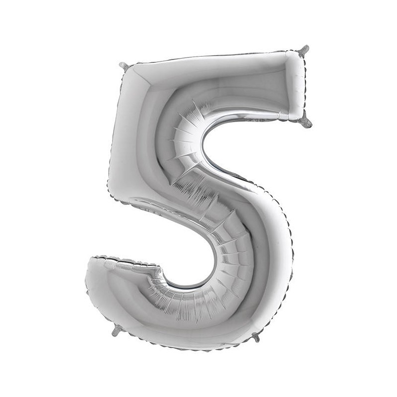 PALLONE NUMERO 5 MYLAR 102cm 40" ARGENTO