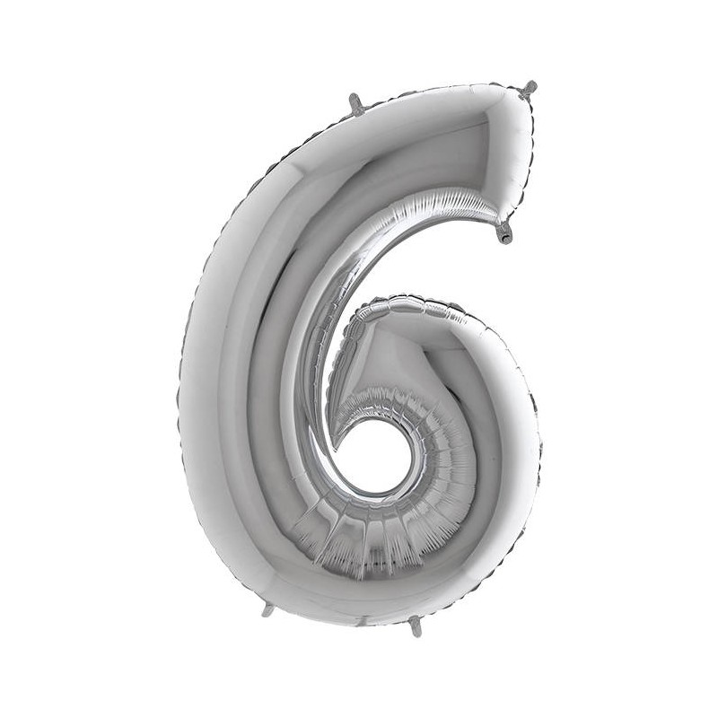 PALLONE NUMERO 6 MYLAR 102cm 40" ARGENTO