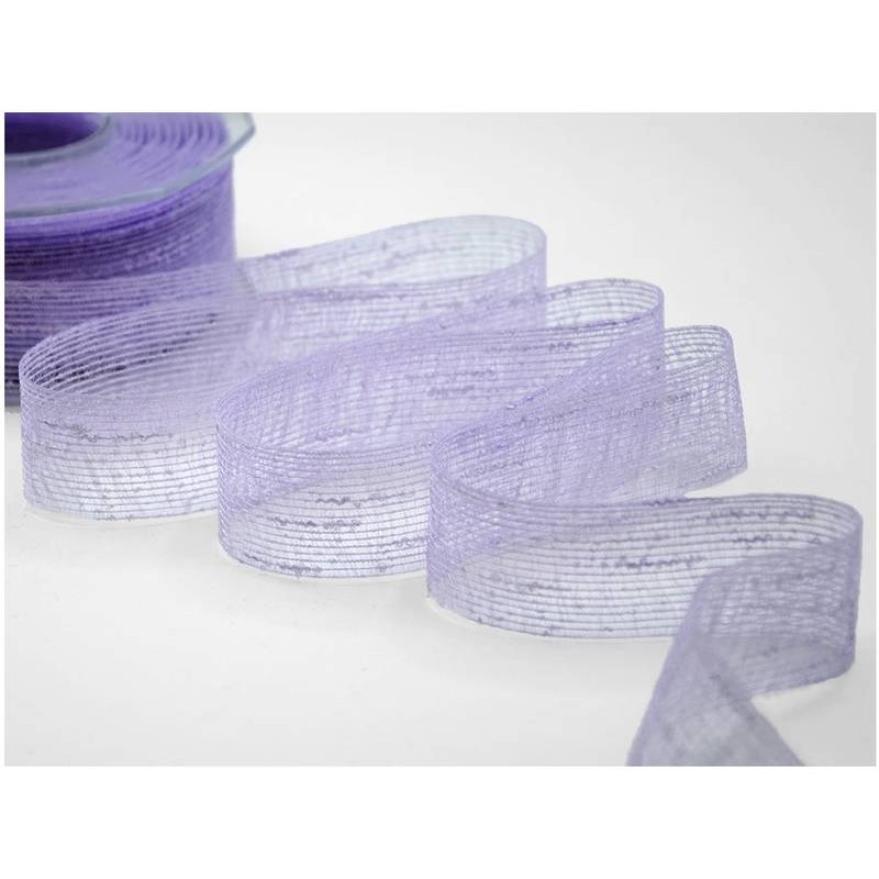 Il nastro veletta è un nastro rustico e trasparente, tessuto con filato bouclè che pur coprendo e nascondendo, lascia intravedere ciò che sta sotto.