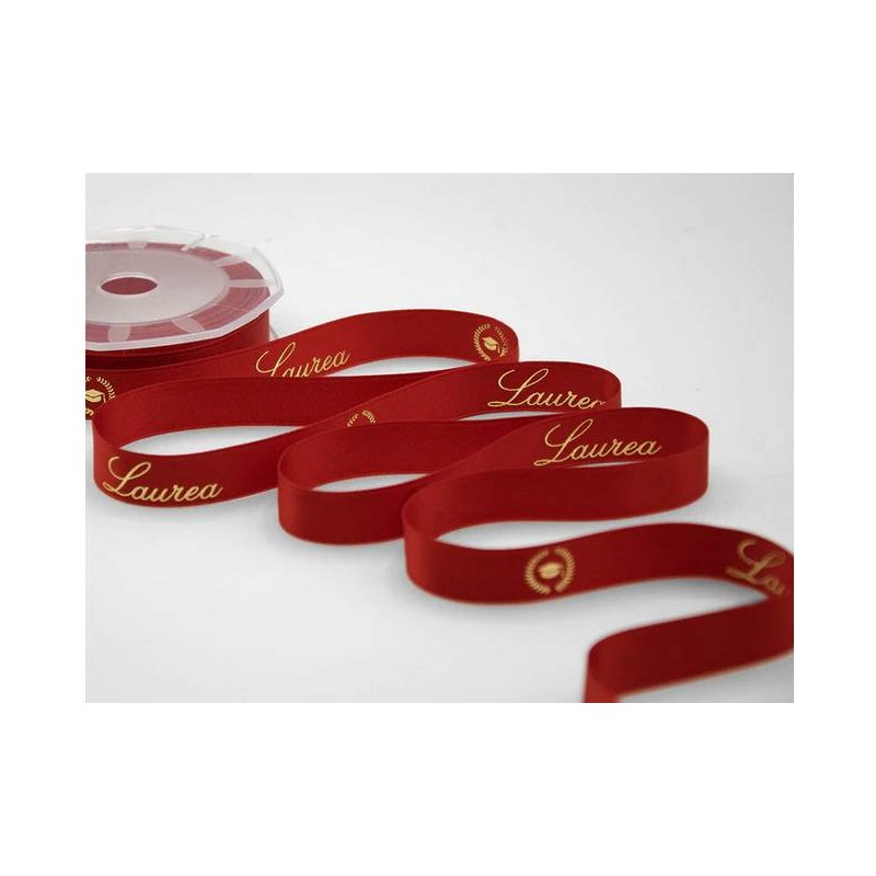NASTRO RASO ROSSO STAMPA ORO mm16x10mt LAUREA