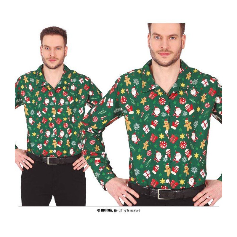 CAMICIA VERDE CON STAMPA BABBO NATALE TG.M 48-50