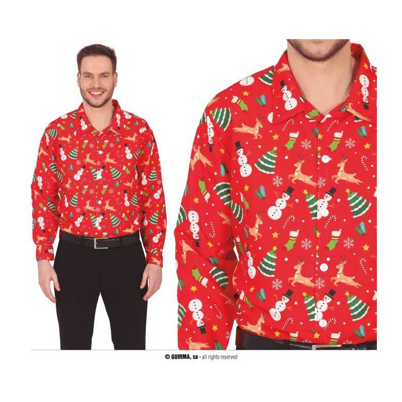 CAMICIA ROSSA CON STAMPA PUPAZZO DI NEVE TG.M 48-50