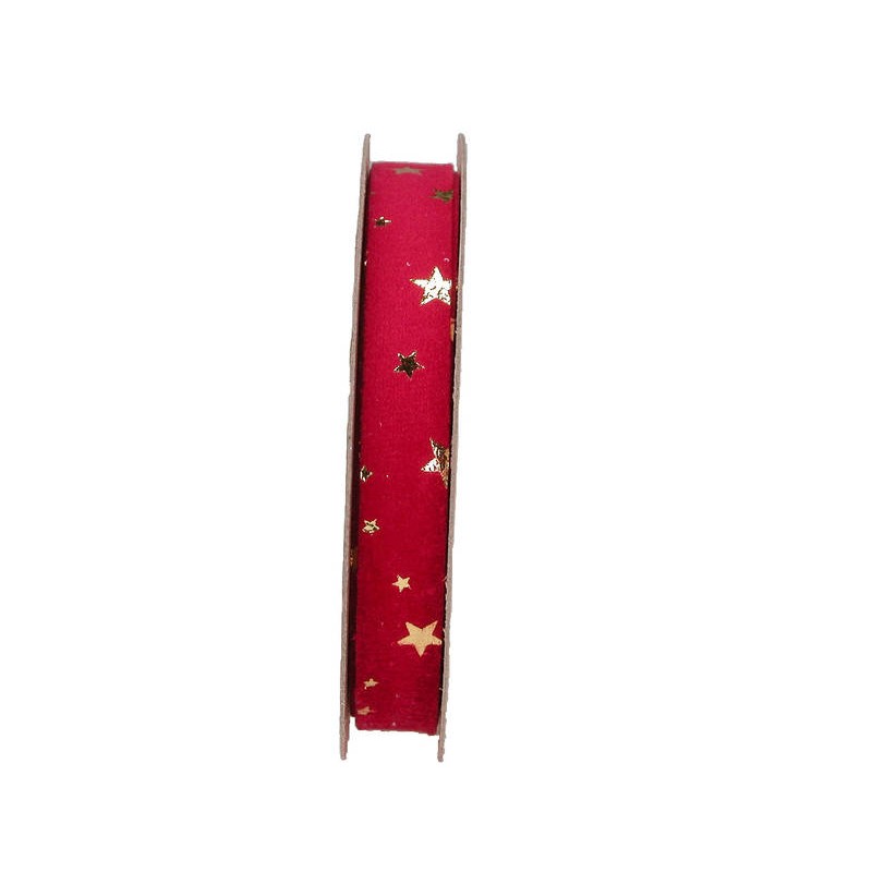 NASTRO VELLUTO STELLE ORO mm15x15mt ROSSO