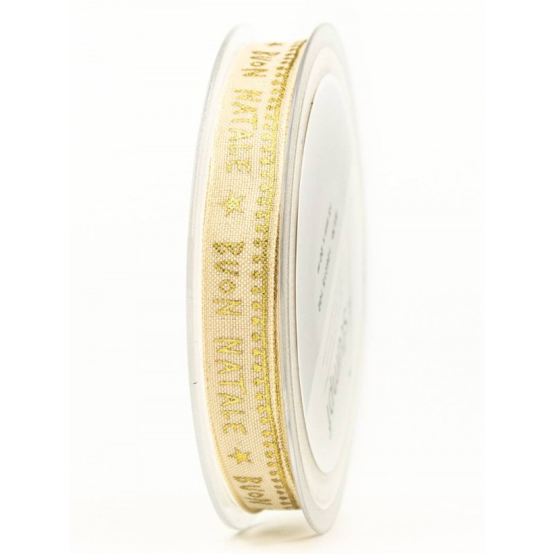 NASTRO TESSUTO BUON NATALE mm15x20mt CREMA-ORO