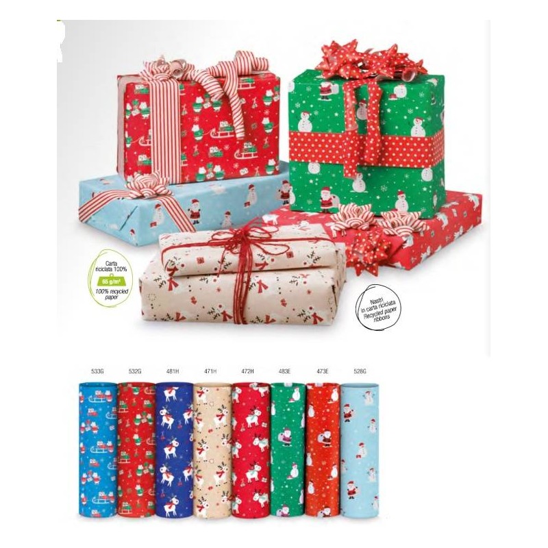 CARTA REGALO NATALIZIA ROTOLO ECOCARTA 0,7x2mt REX ASS.TA FELICE NATALE