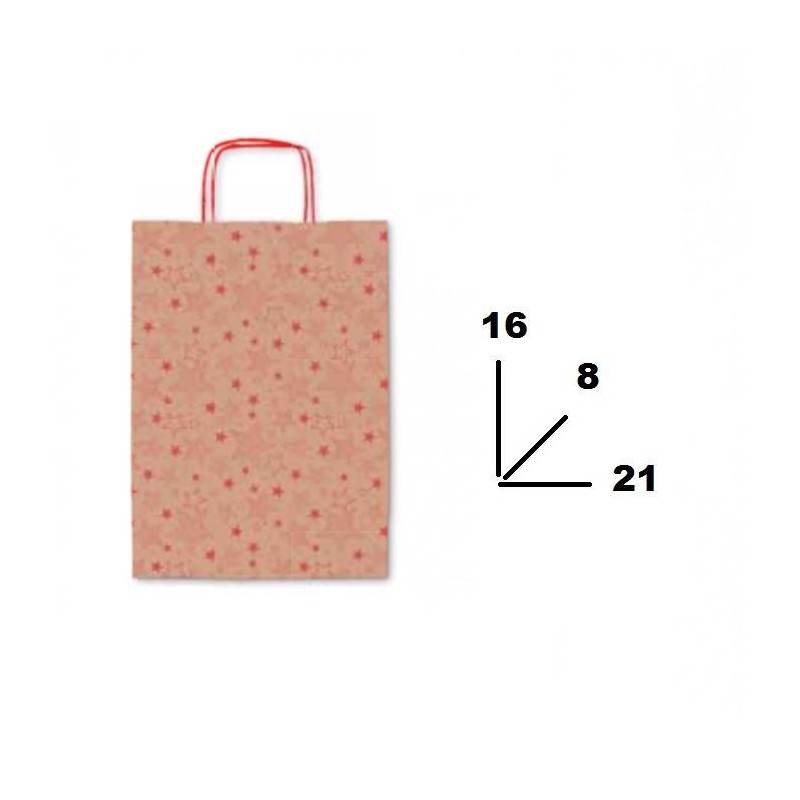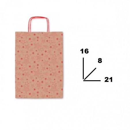 BORSA CARTA COLOR MIS.16+8x21cm STELLINE ROSSE 260F