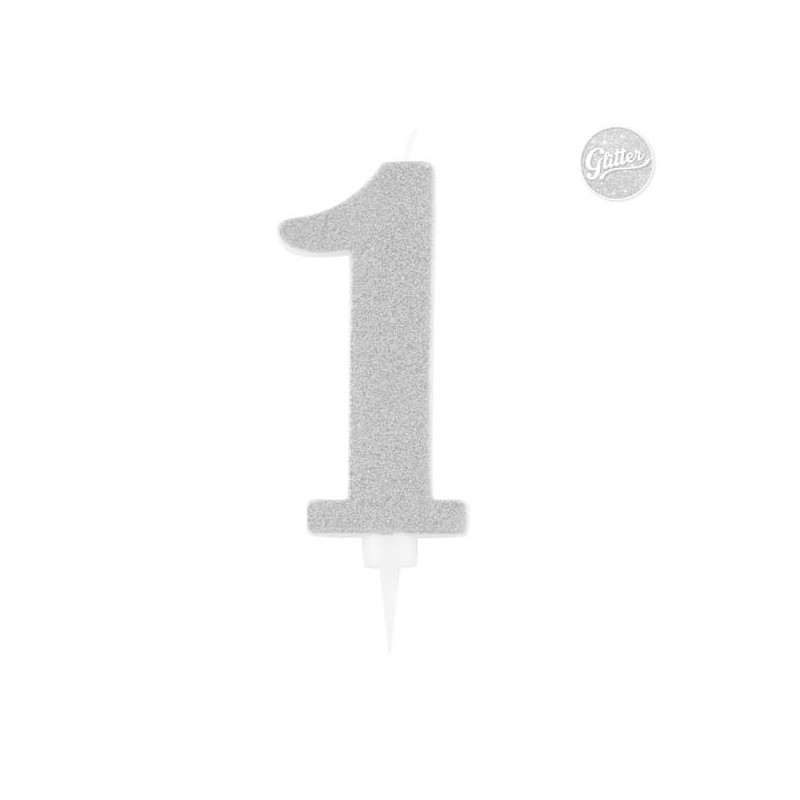CANDELINA GLITTER N.1 ARGENTO 15,5cm