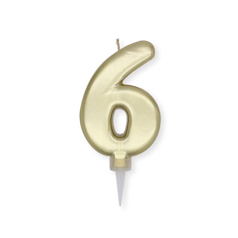 CANDELINA NUMERO 6 PLUMP ORO METAL 10cm
