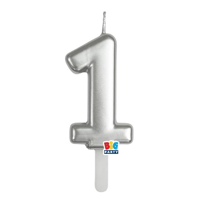 CANDELINA NUMERO 1 TINY PLUMP ARGENTO METAL 7cm