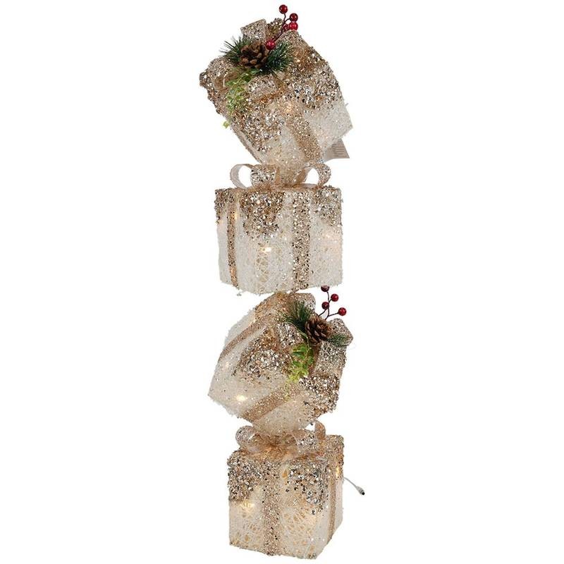 PACCHI DI NATALE 3D CON LUCI E GLITTER BIANCO/CHAMPAGNE 25x25x87cm