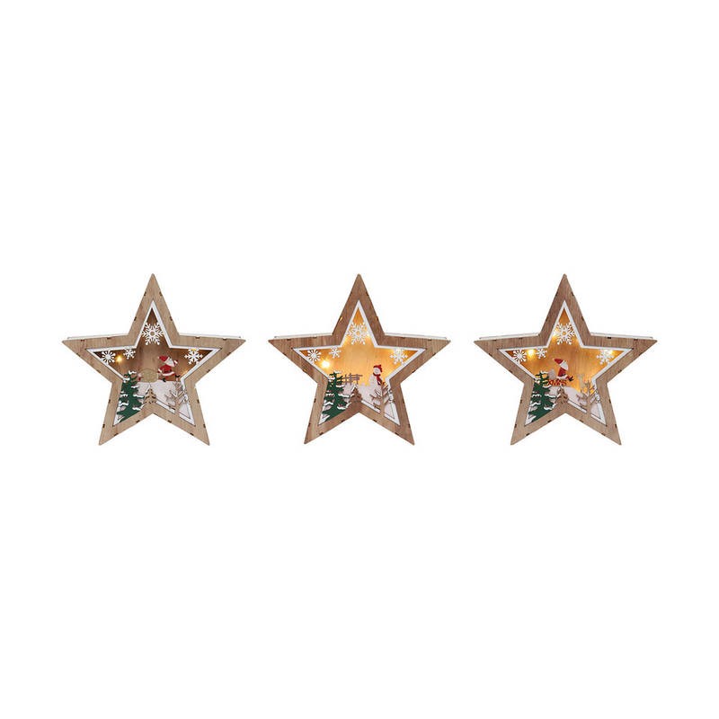 STELLE DI LEGNO C/VILLAGGIO E LED ø27cm ass.ti 1pz