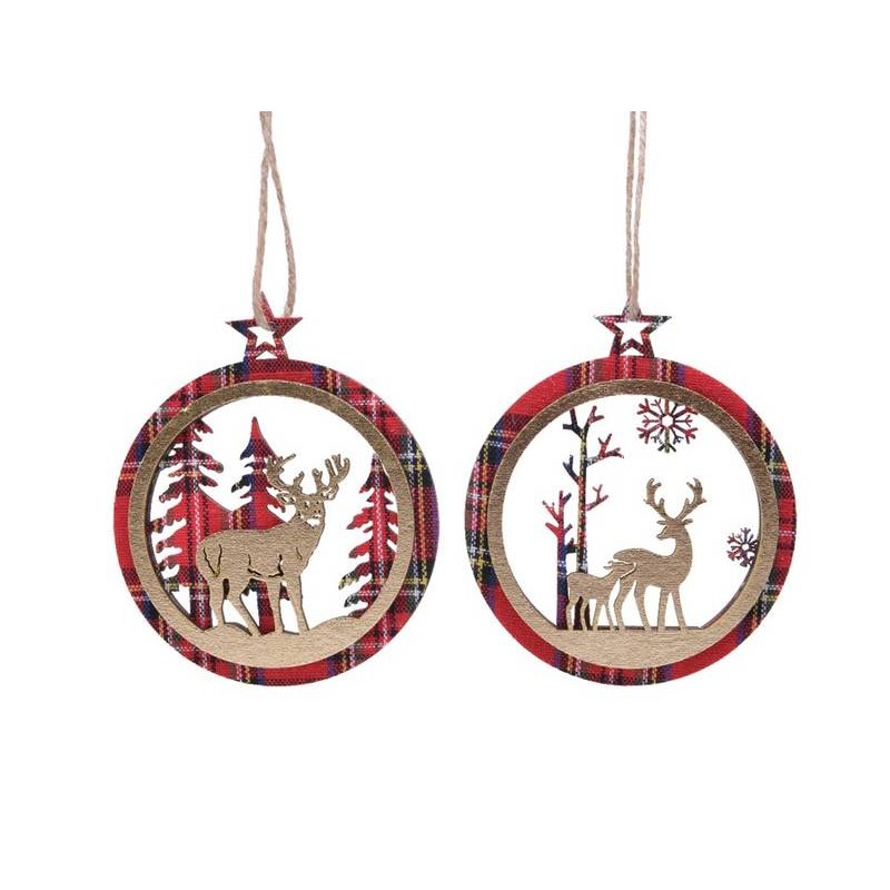 DECORAZIONE DA APPENDERE XMAS SCOZZESE C/RENNA ø9cm ass.ta