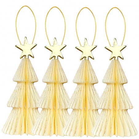 DECORAZIONE IN CARTA ALBERO AVORIO C/STELLA H10cm 4pz